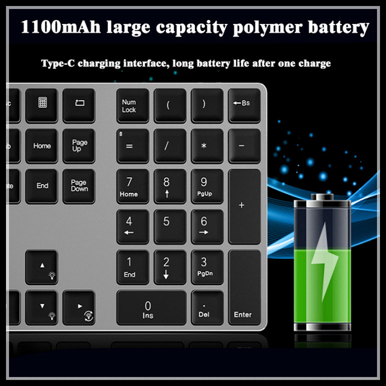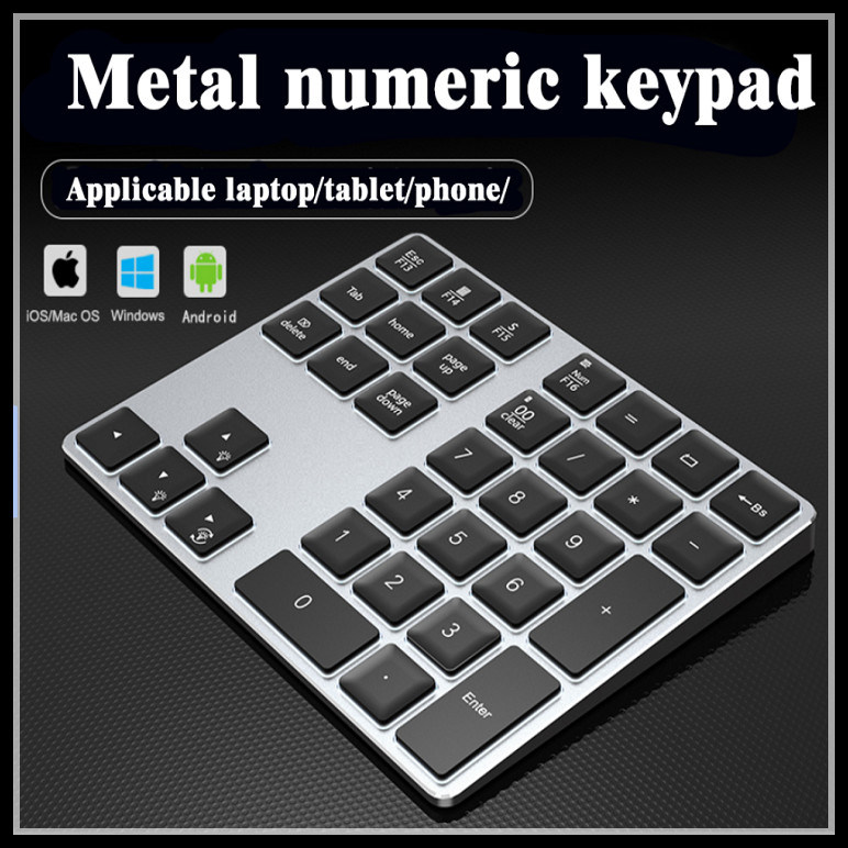 Ψηφιακό αριθμητικό πληκτρολόγιο Bluetooth, ασύρματο αναδρομικά φωτισμένο, επανακαταλογηστέο, λεπτό και ελαφρύ σημειωματάριο μετάλλων, ταμπλέτα, κινητό τηλέφωνο, καθολικό